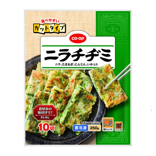 CO・OP ニラチヂミ 10切(250g)チヂミは生地は少なめで、野菜たっぷりが僕は好みですが、この商品はそれを再現できていておいしいです。