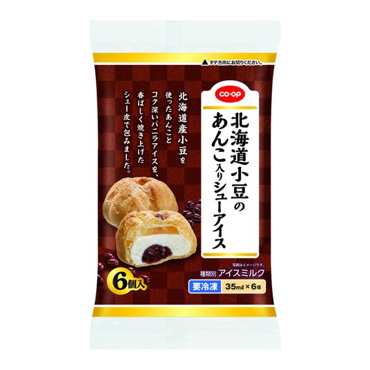 CO・OP 北海道小豆のあんこ入りシューアイス 6個入(35ml×6個)小豆の風味とミルクアイスの乳感がとても合っていて、高級感のあるバランスの良い味わいに仕上がっています。