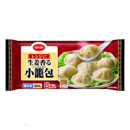 CO・OP レンジで!生姜香る小籠包 8個入(200g)大変おいしいですね。スープは帆立エキス、オイスターソース、ガラスープで癖が無く、澄んだ味わいで、生姜を中に入れているのもアイデアとしてすごくイイと思いました。