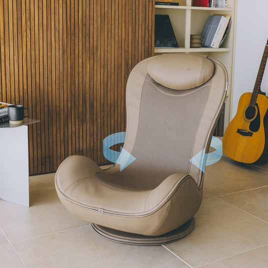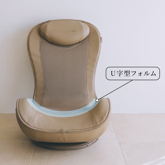 さらに座面部は、座り心地の良さや立ち座りのしやすさを考えた独自のU字型フォルム設計。その他にも、座面の180度回転(左右90度)や、110度~140度まで自分の好きな角度に調整可能な無段階リクライニングを採用するなど、マッサージ器としてだけでなく、リラックスチェアとしても充実な機能搭載。カラーもインテリアに合わせやすい、ブラックとベージュの2色展開。チェア全体はお手入れしやすい高級感のあるシンセティックレザーを用いるなど細部デザインまで拘り、1人用チェアとして普段使いにもぴったりです。