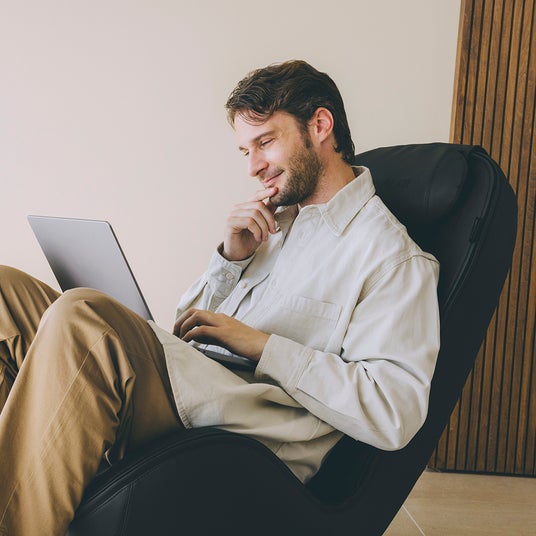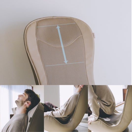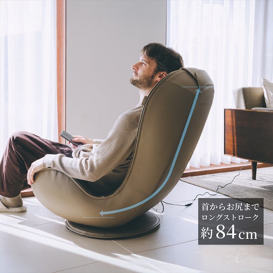 柔らかな曲線美の洗練されたフォルムと落ち着いたカラーリングで、お部屋の雰囲気を損なわずに設置できます。マッサージ器として使わないときは、1人用のリラックスチェアとして。美しさと機能性を両立した、新しいくつろぎ空間で健康的でちょっと上質な生活を。