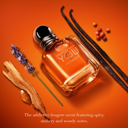 エンポリオ アルマーニのフレグランス「ストロンガー ウィズ ユー」シリーズから、より大胆で魅力的なオードパルファン「ストロンガー ウィズ ユー インテンスリー」が登場します。オードトワレ「ストロンガー ウィズ ユー」よりも濃厚で、温かくスパイシーなクセになるような香りは、共にいることで解き放たれる力を表現しています。