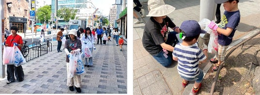 キャラクター「メリ夫」と「つるくん」も一緒に、楽しくごみ拾い!