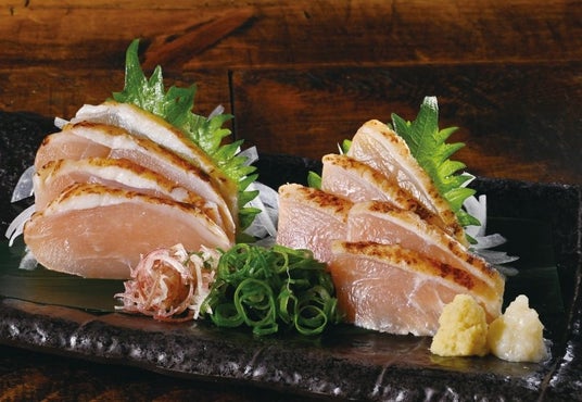 薩摩山内地どり 炙りたたき風葱まみれ塩ユッケ 898円(税込988円)