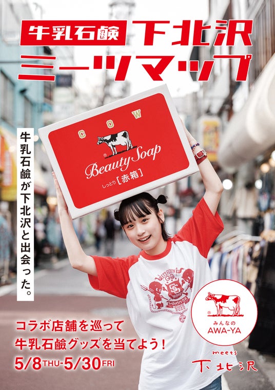 「みんなのAWA-YA meets 下北沢」の開催に先立ち、5/8(木)より牛乳石鹸と下北沢のカルチャーがコラボレーションした店舗を巡るデジタルスタンプラリーを開催いたします。