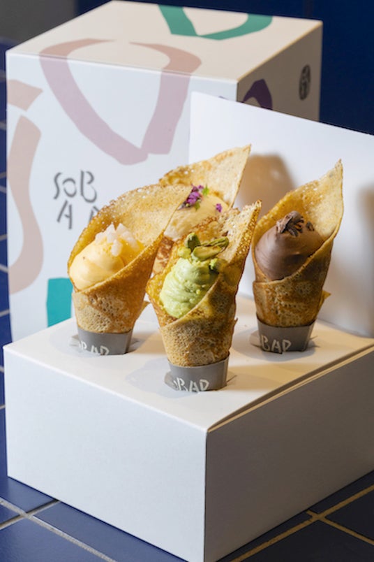 ブランド名やデザイン・コンセプト設計、店舗デザイン、メニュー開発、パッケージなど、店舗の細部にわたる監修を平子良太氏が担当した"そば粉クレープ専門店"