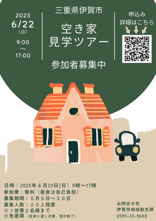 ※伊賀市内在住の人や、過去に伊賀市空き家見学ツアーに参加されたことがある人は申込みできません。