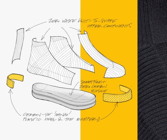 「M0.0NSHOT Zero」は、Allbirdsが創業以来、事業や製品において体系的にカーボンフットプリントを削減することに注力してきた、長年の努力の集大成と言えます。2018年には、カーボンネガティブなサトウキビ由来のグリーンEVAを使用したミッドソールフォーム「SweetFoam(R)」を生み出し、「M0.0NSHOT」で使用する新しいフォームに反映させました。そして2020年、Allbirdsはファッションブランドとして初めてカーボンフットプリントを商品に表示することになりました。その1年後には、アディダスとのパートナーシップを発表し、その時点で両ブランドとして最も低炭素なシューズである「Adizero x Allbirds」を共同開発しました。それらのプロジェクトを通じて、ネット・ゼロカーボン・シューズの開発は自然なことでした。オールバーズのイノベーションを司るチームは、2022年にこのチャレンジに挑み、ブランドのこれまでの学びをすべて活かして「M0.0NSHOT」をデザインし開発に着手しました。
