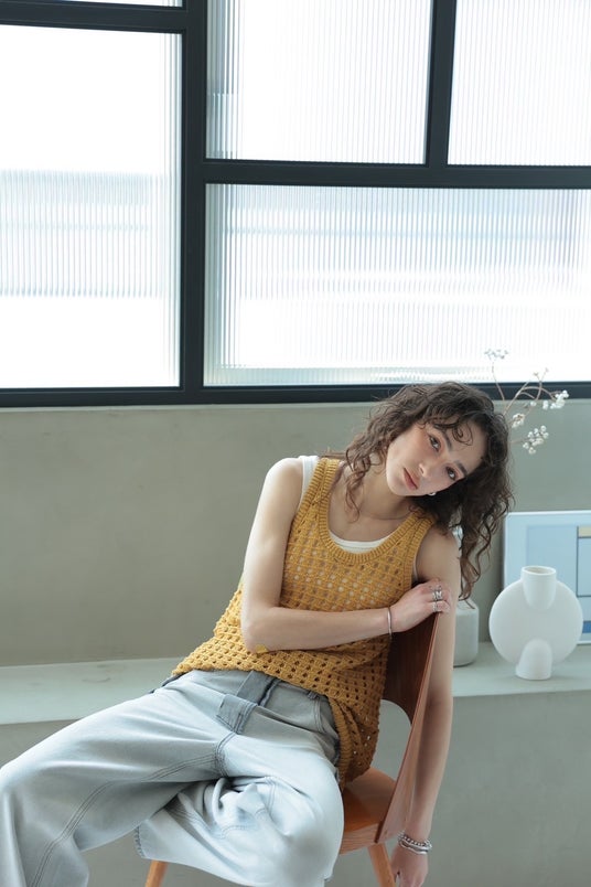 “カラープレイ”と“ナチュラルシティ”をテーマに、異素材や補色を組み合わせ、洗練とナチュラルが調和する装いに。