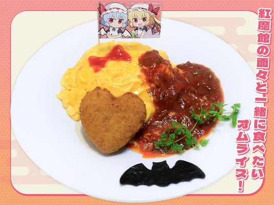 レミリアとフランのあまぁ~いハートコロッケとメイド長・咲夜 特製オムライス ~血のナポリタンソースがけ~
