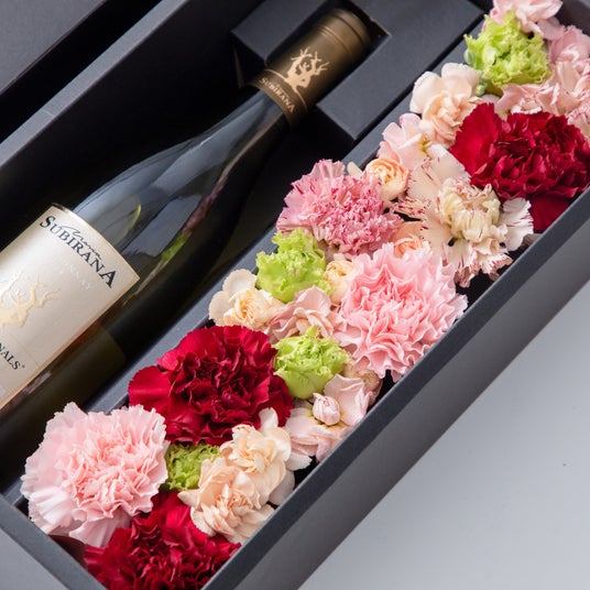 色鮮やかな花々が、贈り物を開ける瞬間をドラマっティックに演出し、ワインに込めた想いをより深く伝えます。
