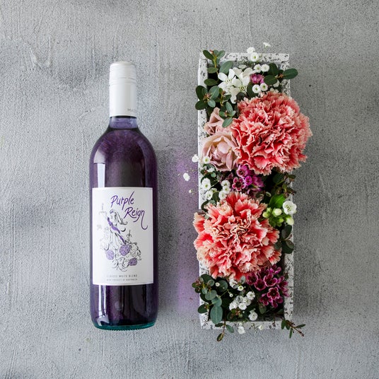 ●【数量限定】紫ワイン(Purple Reign)と母の日生花アレンジ神秘的な紫色が美しいオーガニックワイン「Purple Reign」とカーネーションを使用したアレンジメントの特別セット。