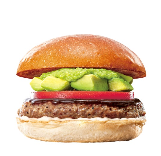 商品概要:牛肉100%パティに、アボカド、ワカモレソースを合わせ、スライストマト、特製BBQソースなどとともにふんわりもっちり食感のバンズで挟みました。牛肉の旨みとアボカドのクリーミーな味わいをシンプルにお楽しみいただける一品です。