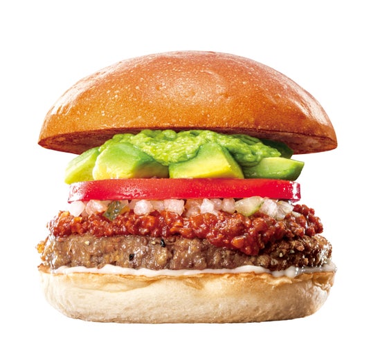 商品概要:牛肉100%パティにボリュームたっぷりの大きさにカットしたアボカドやワカモレソース、スパイシーな風味のチリミートソースなどを合わせ、ふんわりもっちり食感のバンズで挟んだ一品です。トマトソースをベースに、牛挽き肉やチリペッパーなどの香辛料を加え、メキシカンな味わいに仕上げたチリミートソースはアボカドと相性抜群です。