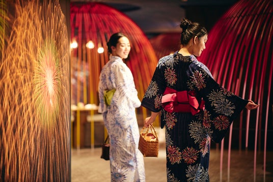 空と海と森が彩る空間で、心弾む滞在が叶うリゾート「リゾナーレ熱海」では、2025年7月25日~12月7日の熱海海上花火大会(*)開催日の全9日間、1日1組限定で、プライベート空間から花火を贅沢に堪能する「絶景花火旅」を販売します。熱海海上花火大会をイメージしたメインダイニング「和食ダイニング 花火」での夕食後、客室のテラスにて本プランのために設えた「絶景特別席」で花火を鑑賞できます。2年目となる今回は、シャンパンやオリジナルパフェを花火鑑賞中に提供。夕食時や客室にて花火柄の浴衣を着たり、線香花火を客室のテラスで楽しめたり、鑑賞の前後も花火を存分に堪能することができる宿泊プランです。