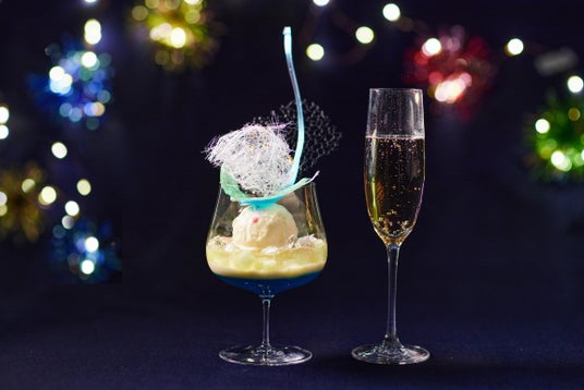 花火鑑賞中、シャンパンと熱海海上花火大会をイメージしたオリジナルパフェを提供します。パフェは、相模湾をイメージした青いゼリー、花火玉を連想させるアイスクリーム、そして打ち上がる花火を飴で表現しました。シャンパンやパフェとともに、優雅なひとときを過ごせます。
