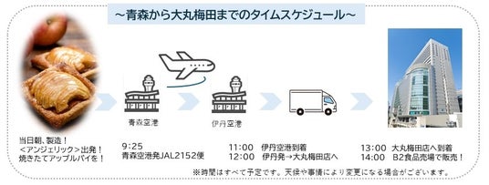 ヤマト運輸と青森県がコラボした航空便特別ルート「A!Premium」で、「一度食べたら忘れられない」青森の当日の焼きあがりアップルパイをその日のうちに大阪へ届けます。A!Premium航空便トライ企画に大丸梅田店も賛同し、今まで実現できなかった東北で最も離れている青森県の現地の有名スイーツ店の美味が、その日のうちに、大丸梅田店のデパ地下へやってきます!