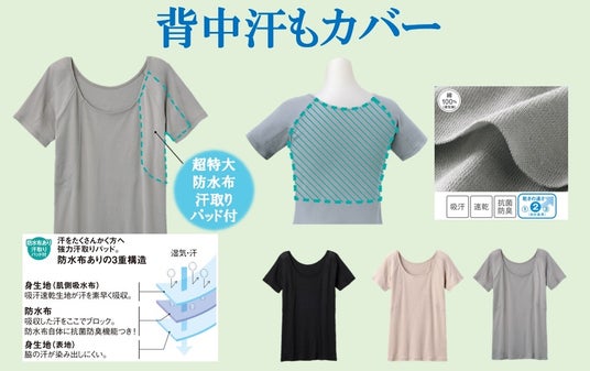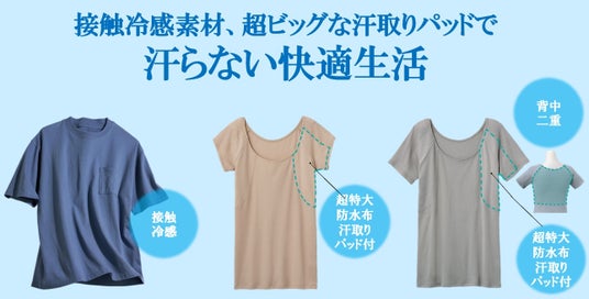 株式会社セシール(本社:東京都新宿区)は、『ジャケットの衿が汚れにくいキレイめTシャツ』、『大きな汗取りパッド付きフレンチ袖』、『背中二重大きな汗取りパッド付き3分袖』を3月28日より販売開始しました。汗のお悩みに対するお客様の声、潜在ニーズにお応えし開発したおすすめ商品で、快適な夏をお過ごしください。