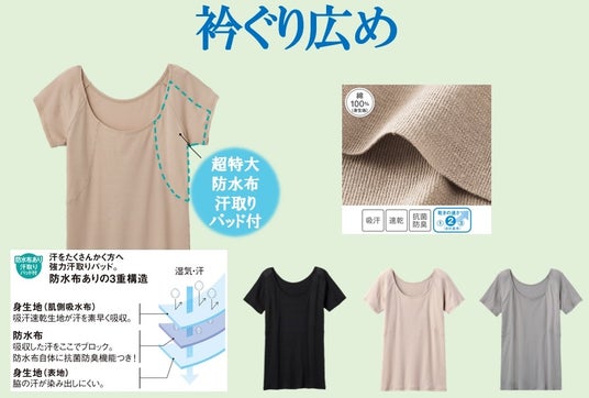 通常の汗取りパッド付きインナーでは解消できない汗のお悩みに対するお客様の声を参考に企画しました。