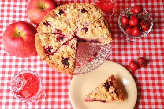 チェリーのジューシーな甘酸っぱさに、クランブルのサクサクとした食感がアクセントとなり、最後まで美味しくお召し上がりいただけます。
