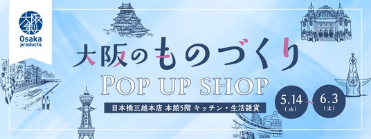 大阪府知事が認定する「大阪製ブランド認定事業(※1)」では、5月14日(水)から6月3日(火)まで、日本橋三越本店にて、認定製品の販売を実施します。