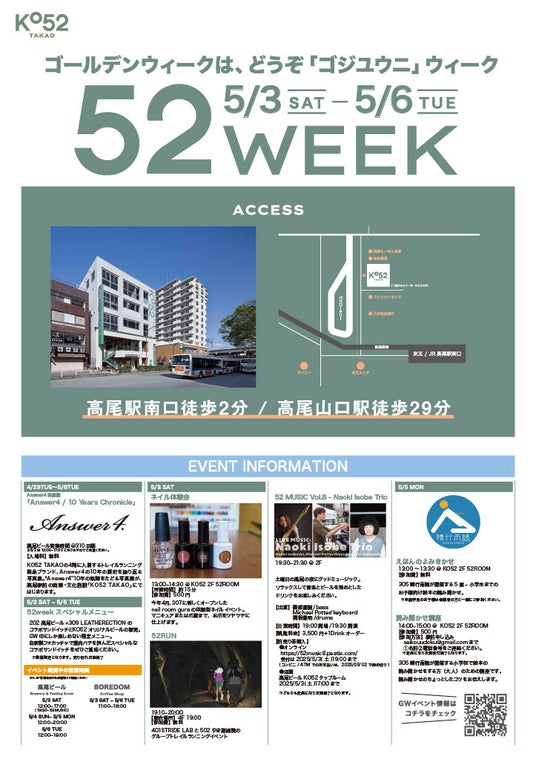 ≪5月3日(土)~5月6日(火)≫ 高尾駅前の商業施設「KO52TAKAO」にて「52WEEK」イベントを開催!