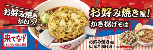 株式会社JR東日本クロスステーション フーズカンパニー(所在地:東京都渋谷区、代表取締役社長:西野 史尚)は、2025年5月8日(木)から駅そば「いろり庵きらく」「いろり庵きらくそば」全85店舗(2025年4月24日現在)で季節限定「お好み焼き風!かき揚げそば」、「お好み焼き風!ミニかき揚げ丼セット」を発売し、大阪デスティネーションキャンペーン(※)を盛り上げます。また季節限定商品は、Suica等の交通系ICカードで購入すると20円オトクに購入できるSuica価格を導入します。