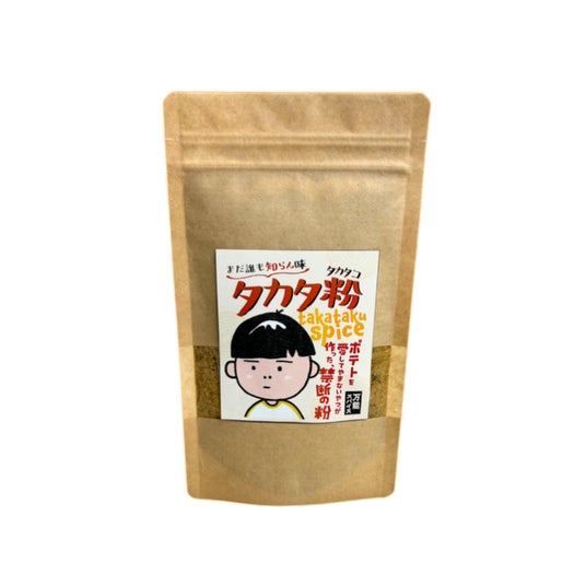じゃがいもで、まだ味わったことのない組み合わせ。そんな“まだ誰も知らん味”を、自分でも食べてみたくて、このスパイスを作りました。名前もパッケージも、みなさんと一緒に作り上げた“タカタ粉”は、想いの詰まったひと袋になりました。まずはじゃがいもにふりかけてほしいけど、実はどんな料理にも合うので、いろんな料理で楽しんでもらえたらうれしいです。