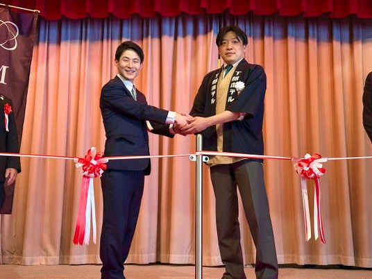 株式会社MAGMA 代表取締役 福永祐大氏(左)と、株式会社下部ホテル 代表取締役 矢崎道紀氏(右) オープニングセレモニーにて