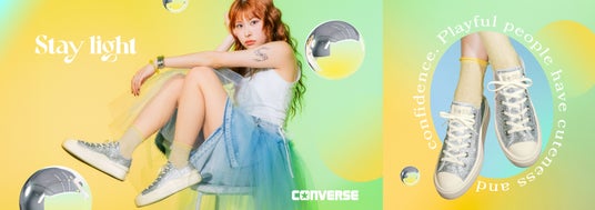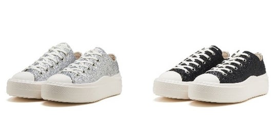 ALL STAR LIGHTのソールに、トレンドのウェーブなデザインを取り入れた軽量ながらスタイルアップが叶うデイリーに活用する一足。注目はアッパーにエレガントなグリッター素材を採用したカラー。他にもABC-MART限定カラーも登場し、タンラベルのロゴとハトメがアッパーと連動した上品なデザインや、春のコーデに取り入れやすい淡いカラーリングが特徴です。