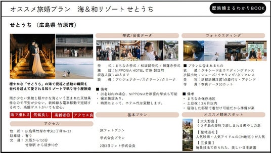 当社は、こうした国内外のカップルの多様化する価値観と、地域が抱える観光資源活用の課題とを結ぶ新たなソリューションとして、滞在型のウエディングツーリズム「歴旅婚プラン」を開発し、販売いたします。