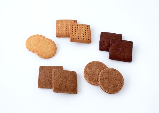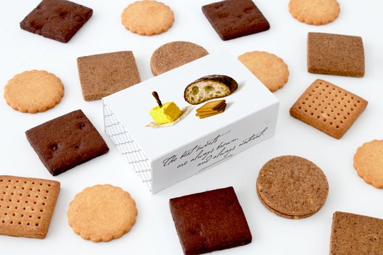 ライ麦酵母フレーク入りの焼き菓子5種(ハニービスケット、グラハム、ショコラ、ナッツ、全粒粉)を2枚ずつ、合計10枚。