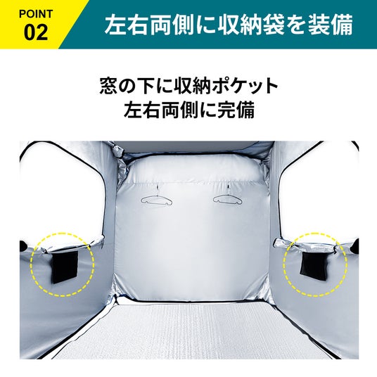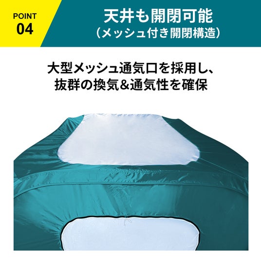 天井も布とメッシュの二重構造、布だけ開けばメッシュ生地で換気可能
