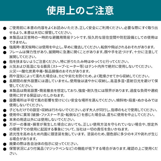 小林薬品 KO395 KO396 防災用 避難個室テント 180 / 140 使用方法