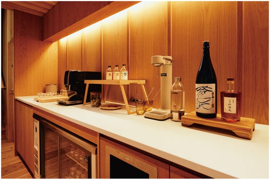 地域の自然に触れる体験の後は、地元のお酒やおつまみ、お菓子などをご用意したラウンジで過ごすバータイム(16:00-19:00)を。奥多摩が夜の静けさに包まれる前の、夕暮れの時間を、ゆっくりとおくつろぎください。