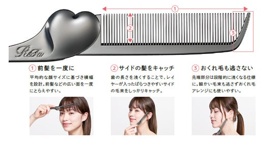 髪への負担を軽減しながら、前髪やおくれ毛などの細かな毛束もとらえて整え、髪にツヤとまとまりを与えます。お手入れ用のクロスと専用ポーチが付属されているので、いつでも手軽にお手入れでき、持ち運びにも便利な折りたたみ式コームです。