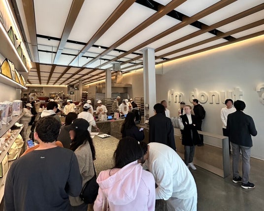 また、ニューヨーク店限定で提供している抹茶やほうじ茶のドリンクも人気を集め、店内ではドーナツと一緒にブランドロゴを背景に写真を撮影されるお客様の姿も多く見受けられました。