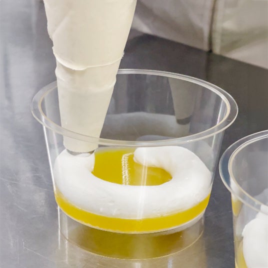 下層部にレアチーズを仕込んだのは、「最後のひと口まで、とびきり美味しく楽しんでほしい」