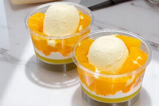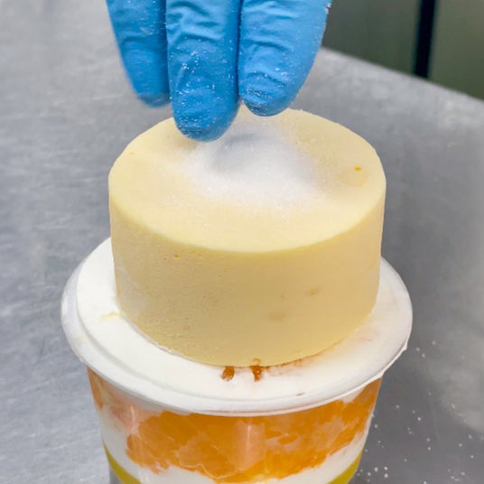 さらにコクのある生クリームに、最後にはぷるんとしたオレンジゼリー。層ごとに異なる味わいが、最後まで飽きずに楽しめる、ボリューム満点の贅沢パフェです。