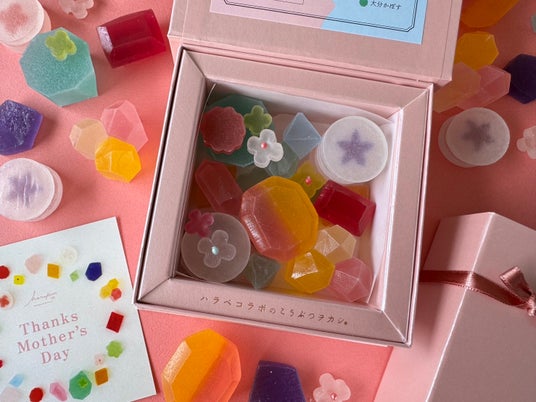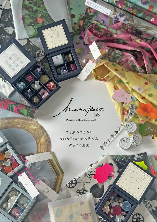 harapecolab(ハラペコラボ):宝石のような寒天菓子「こうぶつヲカシ」や、テーブルを彩るアートなフードグッズを提供。新作の「カプセル入りこうぶつヲカシ(税込¥580)」や「おはじきのこうぶつヲカシ(税込¥2,980」なども必見です。