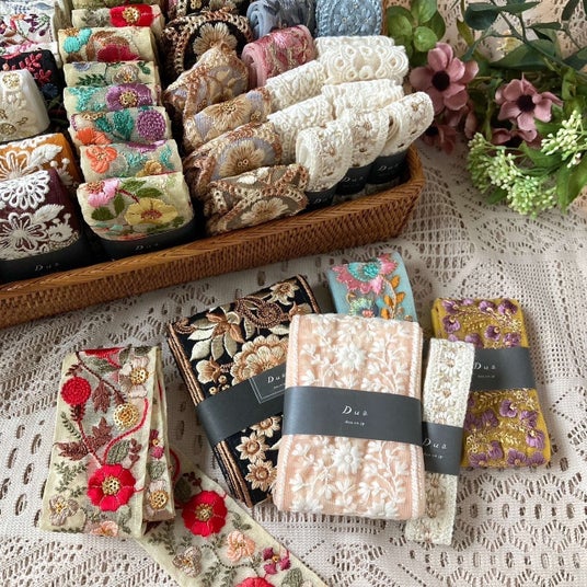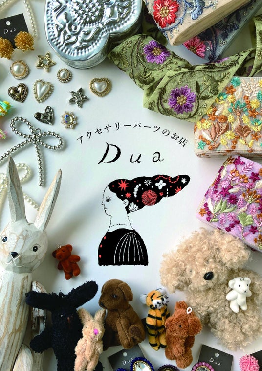 Dua(ドゥア):世界中から集めたアクセサリーパーツやオリジナルアクセサリーを展開。会場では、完成品アクセサリーの販売はもちろん、オーダーも受け付けます。いつも福岡のお店や大阪のお店では並んでお待ちしていただくこともある大人気のオーダーアクセサリー。この機会に是非ご自分だけの特別なアクセサリーをお楽しみください。その他にも、インド刺繍リボンや制作キット、雑貨など、多彩なアクセサリーパーツなどのアイテムが揃います。世界中をめぐる旅をするようなワクワク感を、そして乙女心をくすぐる体験をお楽しみください!