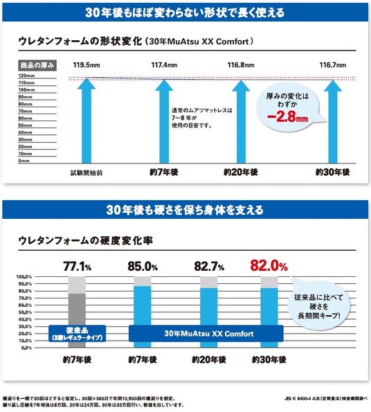 最上位モデル「30年MuAtsu XX」は、12cmの厚さで安定感のある寝心地へ。