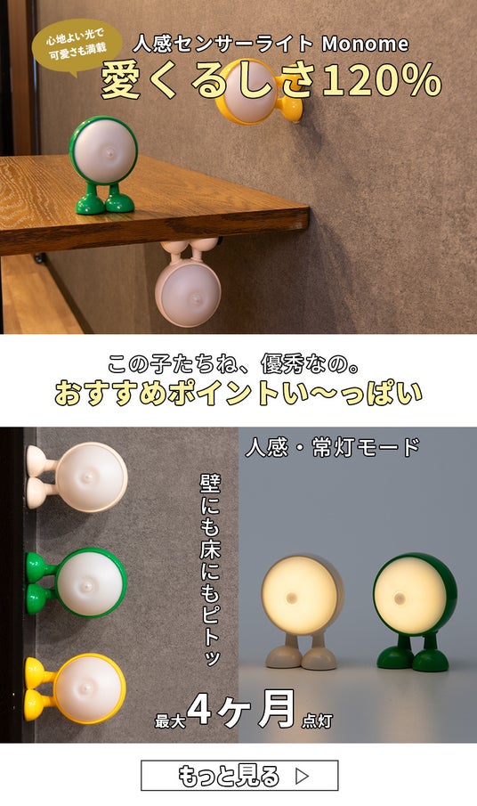 【新発売】可愛らしいちっこいサイズの人感センサーライト MonoMe(モノミー) が新登場。