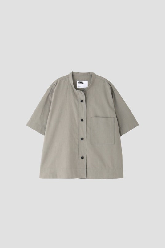 WA-SHI COTTON POPLIN SHIRTメンズは、一見シンプルなデザインの半袖シャツですが、裾のカッティングを前後で変えています。ラウンドしたフロントに対しスクエアにカットされたバックスタイルをデザインポイントとしています。
