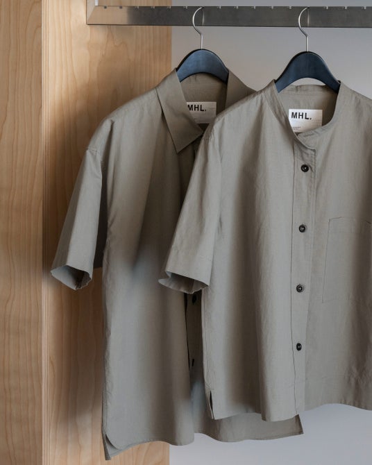 その中のMHL. レーベルは、ワークウェアに見られる機能的なディテールや耐久性のあるコットン生地への魅力から生まれました。MARGARET HOWELLコレクションの洗練された佇まいと、MHL.のタフで実用的なキャラクター。この対照的な要素が融合することで、マーガレットのデザイン哲学の本質が表現されています。