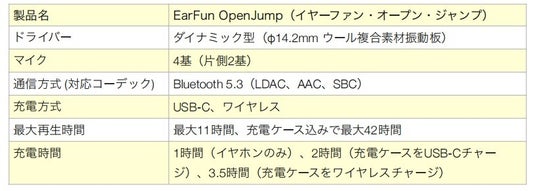 EarFun Technologyは、耳掛け型完全ワイヤレスイヤホン「EarFun OpenJump(イヤーファン・オープン・ジャンプ)」を25日に発売します。完全ワイヤレスタイプとしては大口径のφ14.2mmウール複合膜振動板ダイナミックドライバーを採用、独自の低温増強技術「BassSurge(TM)」を駆使することで、オープン構造でありながら力強い低音を実現しました。