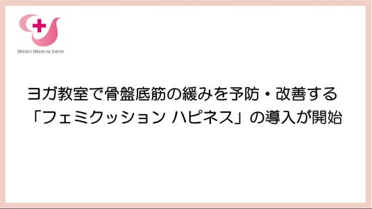 がんサバイバー、骨盤臓器脱患者など、深刻な医療課題を抱える方々の症状緩和、予防につながる医療機器の企画・開発・製造を手掛ける株式会社三井メディカルジャパン(本社:東京都中央区、代表取締役:三井桂子)は、2025年4月より、東京都足立区のヨガ教室「maitri yoga(マイトリーヨガ)」様(足立区、代表:岩崎奈緒子氏)にて、弊社が開発する「フェミクッション ハピネス」の導入を開始したことをお知らせいたします。