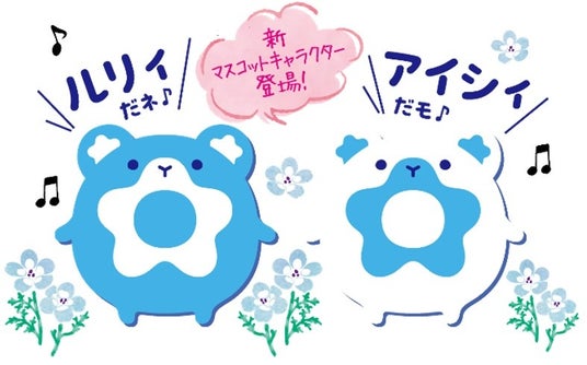 ネモフィラマスコットキャラクタールリィとアイシィは、みはらしの丘に住む、ちょっと変わったいきものです。みんながネモフィラの景色に「おおお~~~」と感動したときにあらわれます。ふたりは友だちどおしで、大のなかよし。調子がいいときには空や海の方までお散歩にいき、空とお話ししたり、海の声をきいたり、そこにいるいきものたちと遊んだりします。