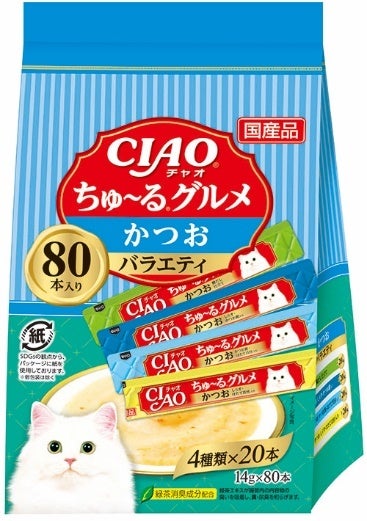 いなばペットフード 猫ちゃん用おやつ「CIAOちゅ~るグルメ」に80本入りバラエティパック2種が新登場!