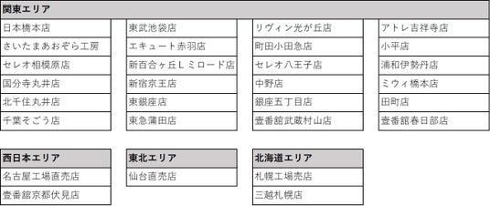 対象店舗:銀座店、二子玉川店、横浜店、名古屋店、大阪店